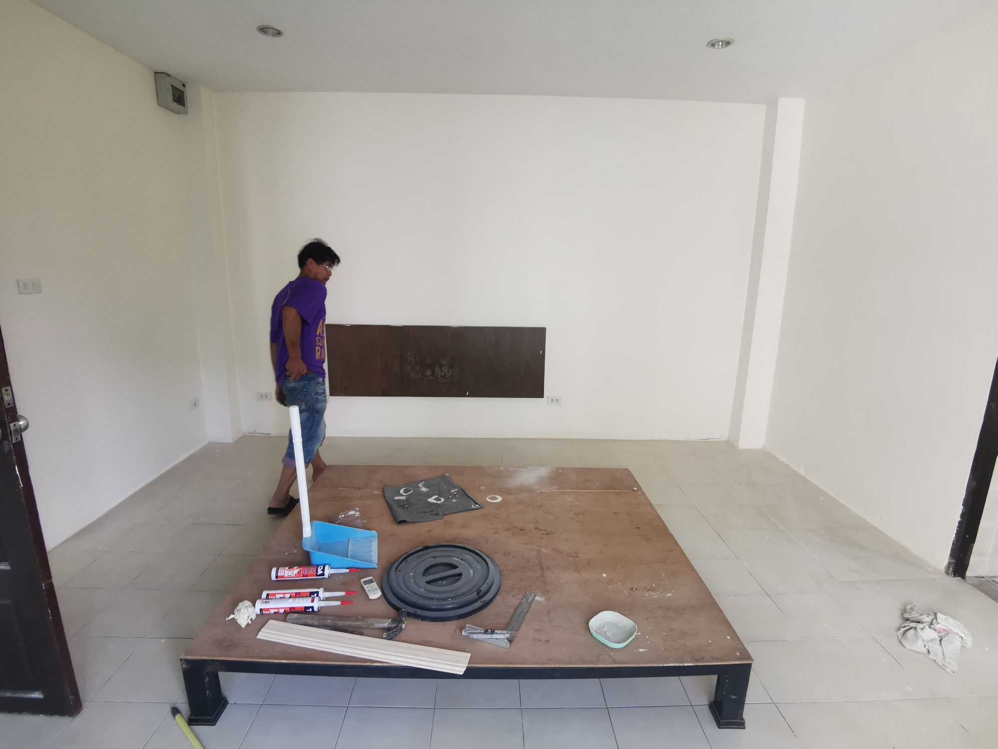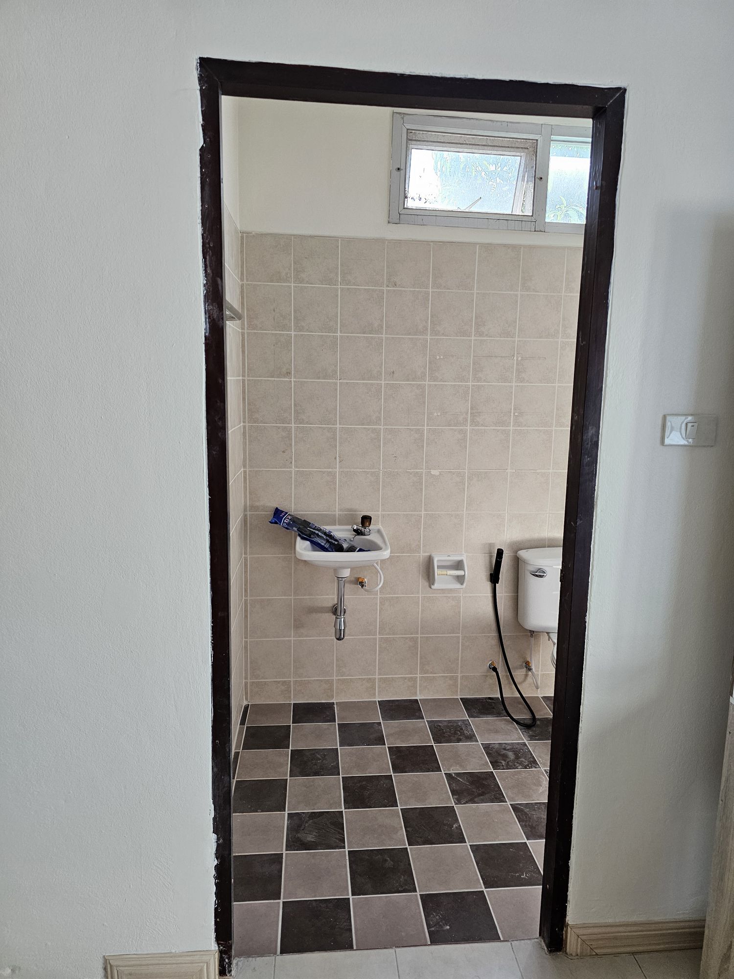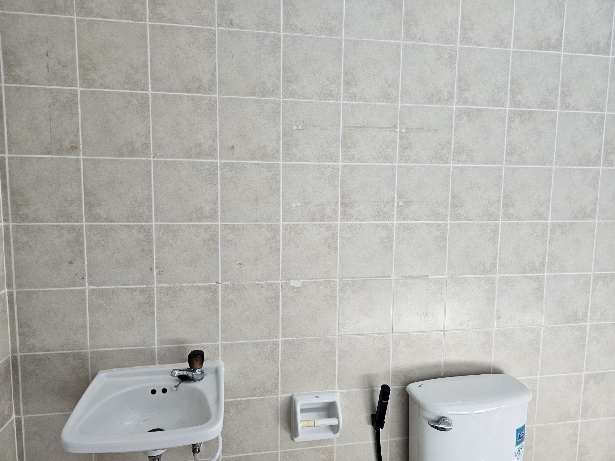 ยังไม่มีกระจก กับชั้นวางของในห้องน้ำ